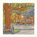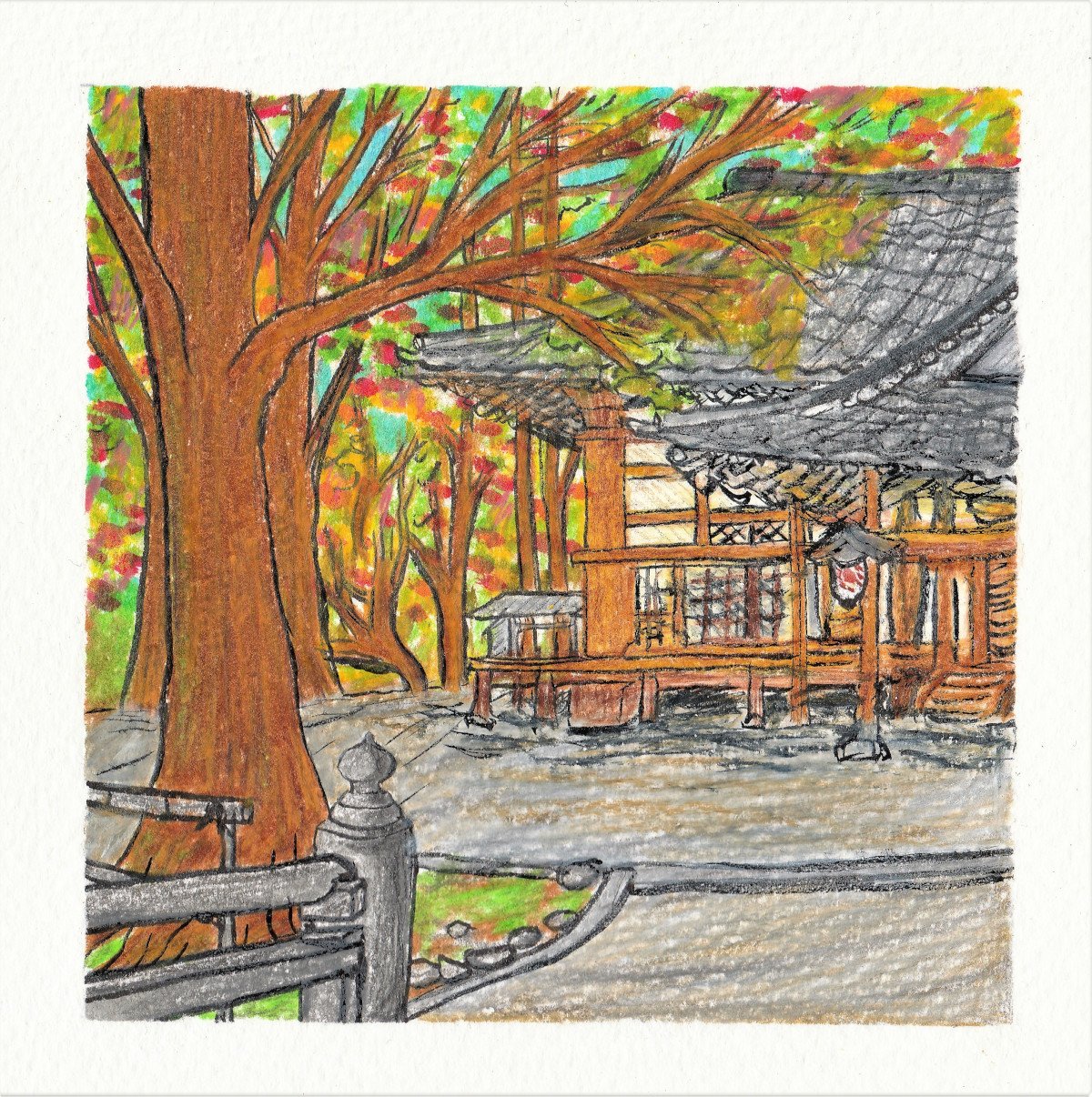 Voor deze serie 'Memories from Japan' heb ik geput uit mijn herinneringen en belevenissen in Japan: werken, wonen, reizen, studeren. Aan de hand van herinneringen en foto’s zet ik momentopnames om naar een tekening. Deze ‘Memories from Japan’ zijn omlijst door een wit kader. Door het vierkante formaat en het kader maak ik een speelse referentie naar polaroids.’