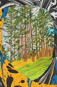10x15 cm. Silver pen, Akashiya sai marker, fineliner, coloured pencil and marbled paper on Fabriano 200 g paper. Incl frame