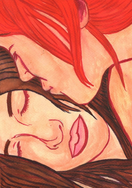 The series Intimacy focuses on feelings of intimacy and display of affection through body language. All paintings come in a signed folder: in pencil and with my personal Japanese artist stamp. The paintings are also signed on the back, and the majority have my signature displayed on the work as well. The paintings have a white border that differs in width, to make framing easier. First paper size is given, following by the size of the image (excluding the white border).
