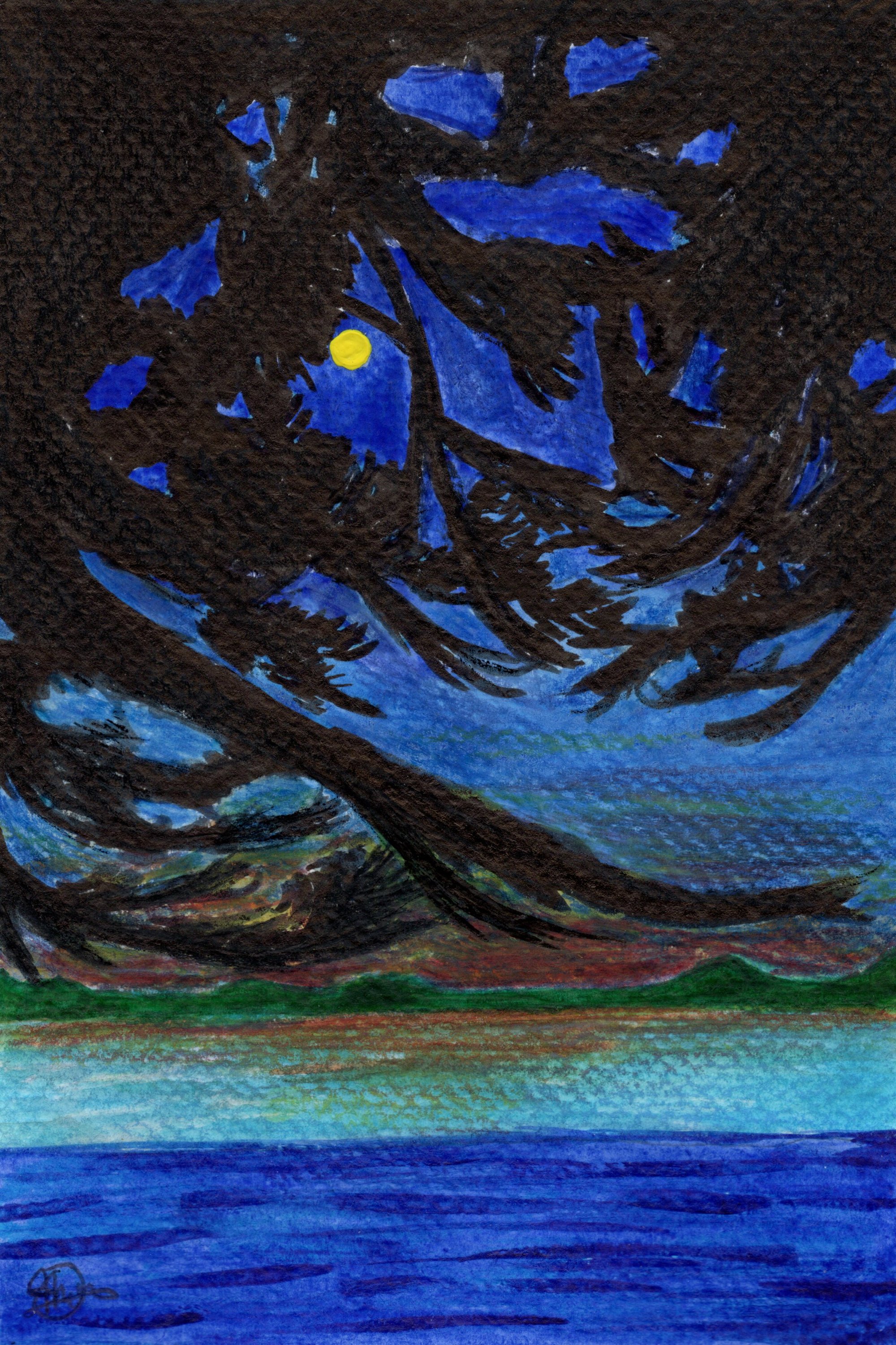 This nighttime moonscene was inspired by the Japanese artist Kawase Hasui.